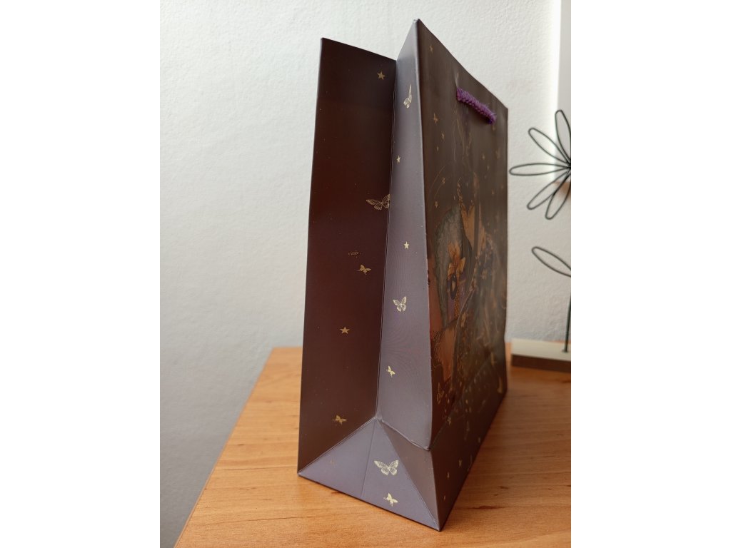 Dárková taška s glitry a siluetou dívky z pevného papíru.