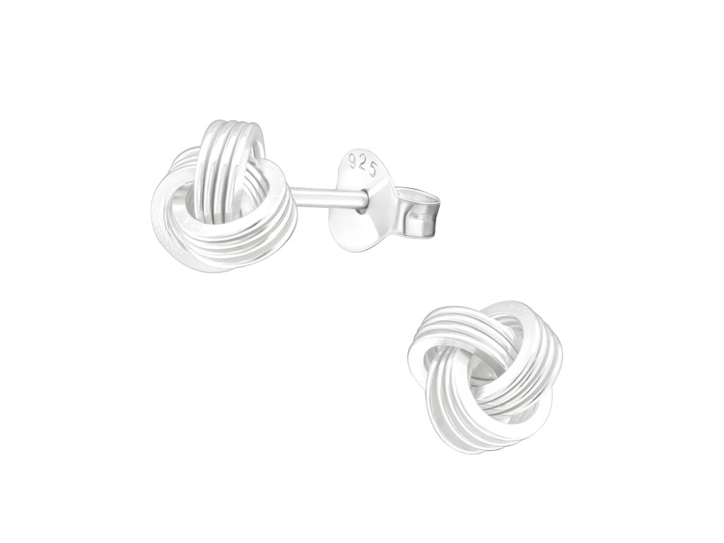 Elegantní puzetové náušnice ve tvaru uzlu z kvalitního stříbra s antikorózní úpravou – nadčasový šperk pro každý den.