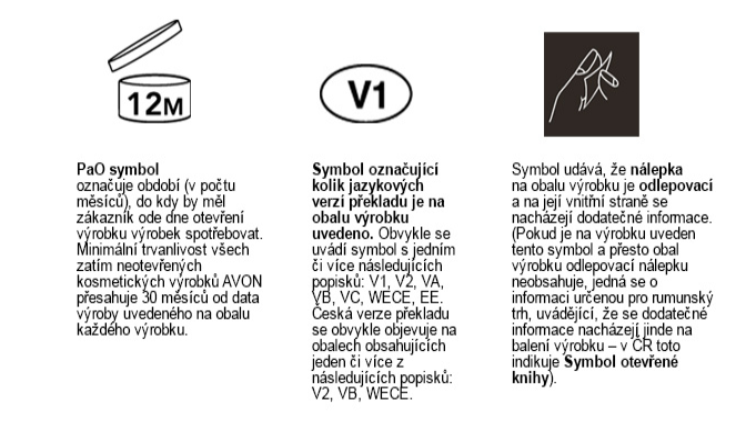 Každý kosmetický produkt Avon má uveden symbol otevřené dózy na obalu produktu, ve kterém je uvedena doba (v počtu měsíců), do kdy by měl zákazník produkt po otevření spotřebovat. Z30.06.2021 znamená, že pleťová maska byla vyrobena dne 30. 06. 2021 a má na obalu uveden piktogram dózy s nápisem „12M“, který znázorňuje, že pleťovou masku se doporučuje spotřebovat do 12 měsíců od jejího otevření.